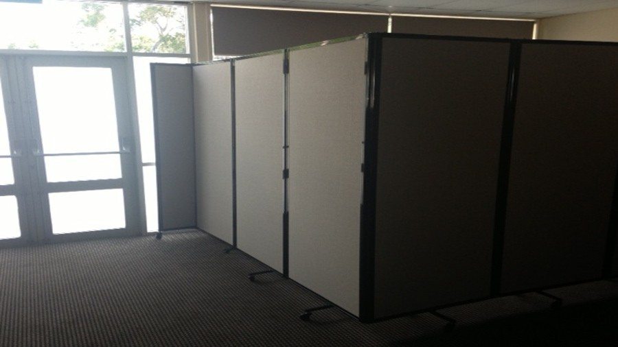 After some initial consultation, the 360 Folding Portable Room Divider was selected for the project. This particular partition unit offers multiple configuration capabilities such as curved, zig-zag and L-shape so was a great solution for this particular problem. The fact that it’s a lightweight folding unit with wheels for easy movement made it even more appealing.